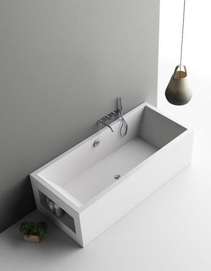 Aquarius – die maßgefertigte Badewanne in Corian® – besticht linear und edel mit fein gerundeten Innenkanten, die zudem eine leichte Reinigung ermöglichen. Dieses Modell ist gänzlich personalisierbar in Ihren Maßen und vielen weiteren Optionen, wie z.B. die zweite geneigte Rückwand, Nischen und Ablagen, die zur Außenwand zentriert oder versetzt gesetzte Wanne mit Armaturen an der Wand, am Wannenrand oder, für freistehende Wannen, am Boden.